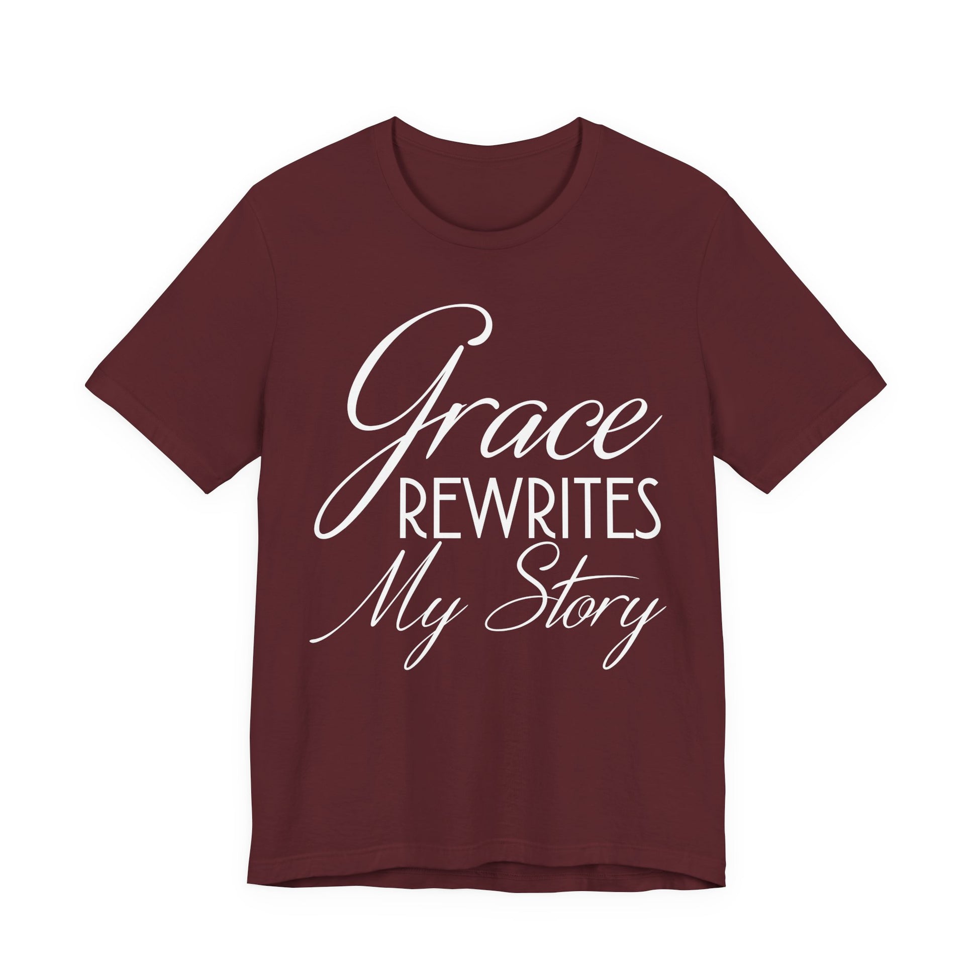 A reminder that grace changes everything. This tee features the uplifting phrase “Grace Rewrites My Story” in a beautiful script font a declaration of redemption, hope, and new beginnings. Soft, comfortable, and perfect for everyday wear or as a meaningful gift.