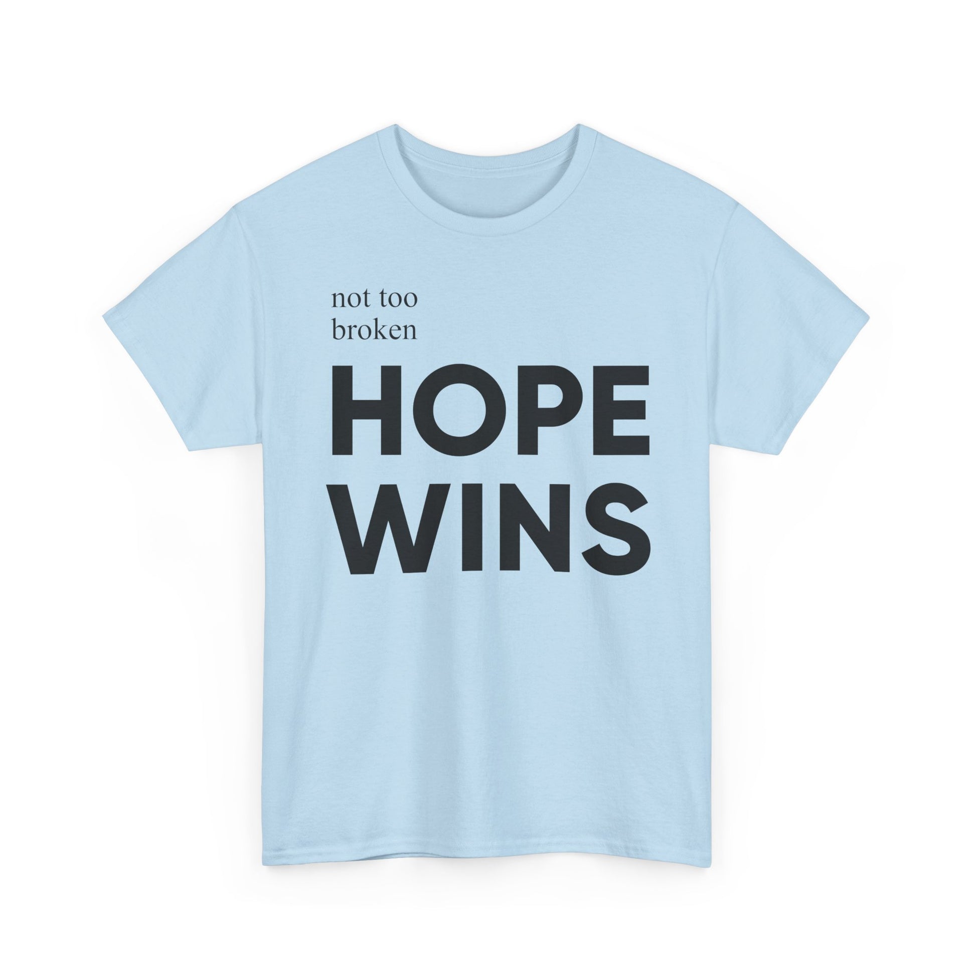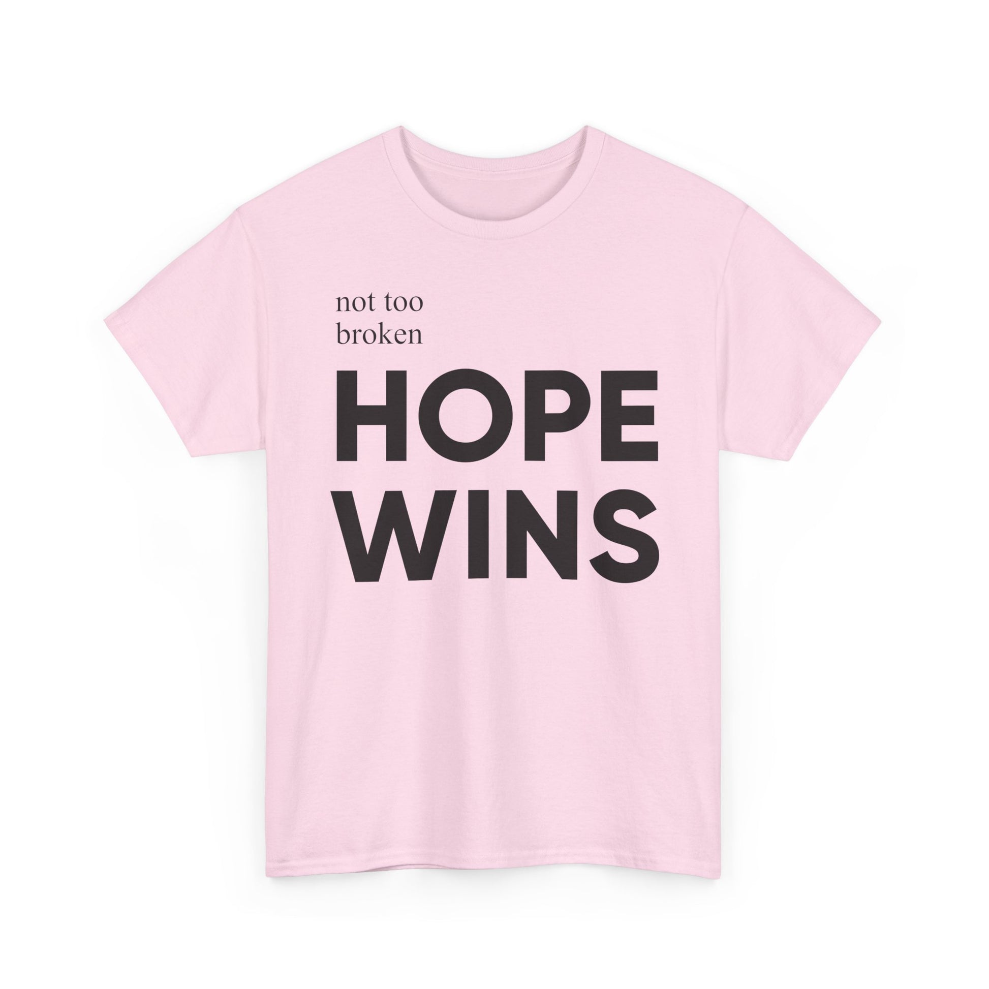 A powerful reminder that no matter how broken the moment feels hope still wins. This minimalist statement tee features bold typography on a neutral tone, designed to inspire resilience and speak life. Soft, comfortable, and perfect for everyday wear or gifting someone who needs encouragement.